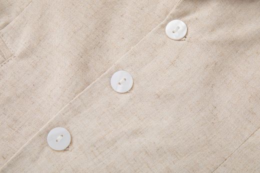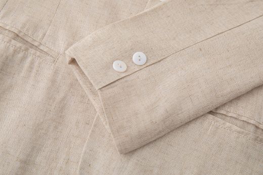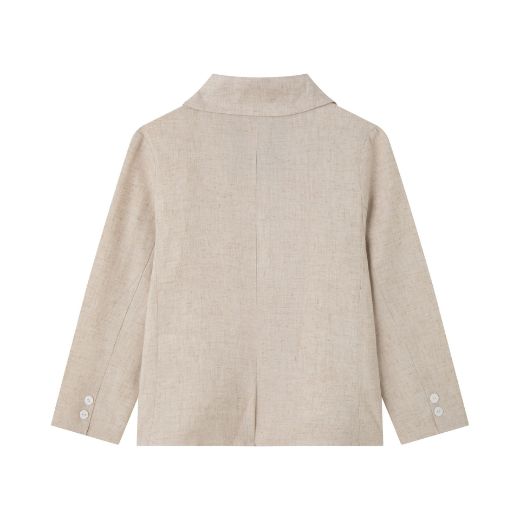 Chaqueta de traje, en tejido de lino y viscosa. Cuello tipo smocking. Detalle de falso bolsillo con vivo.